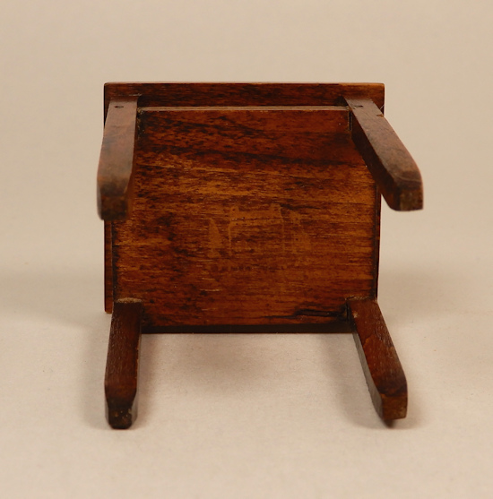 Nice wooden side table made by Tynietoy. It has an open shelf underneath the top. Nice condition and marked with the Tynietoy logo at the bottom which is shown in 2nd photo. Nice condition and good finish. 2 3/4" high, 2" wide. These were used to hold telephones or can be used as a side table for numerous other objects. Pegged and nail jointed.