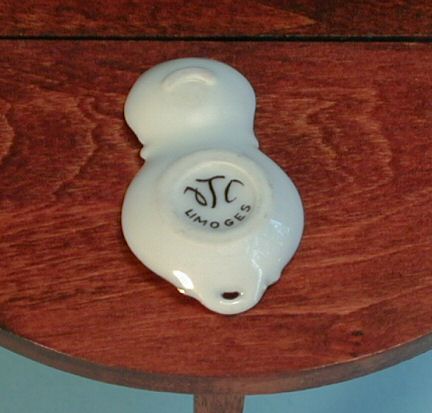 What an unusual shape on this double dessert or pastry tray. It was made in France and marked Limoge on the back and matches the previous tea set shown. It is pictured on a Tynietoy table (Tynietoy table is not for sale) to show a size comparison. This double tray is in perfect condition with no breaks or repairs and would look super with the tea set and petit fours in your miniature setting.