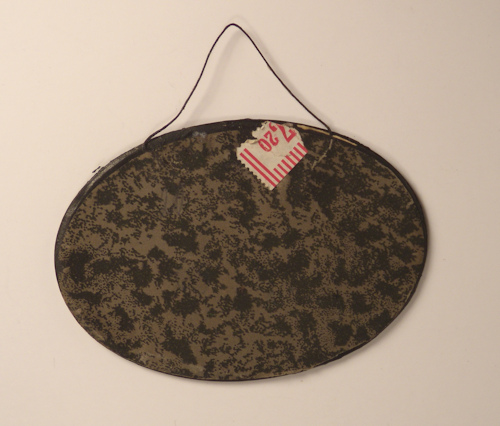 Great looking oval picture ready to hang, made in Germany c. 1920. It depicts two children sitting at a table in front of a window, one reading the newspaper and the other one is sewing. Great early print behind glass with a black frame. The reverse is also shown with an early German price tag. Original stringing is attached for hanging. Lovely condition. Size is 3 3/4" long by 2 1/2" high. There is a little bit of glare at the top of the picture, which happened during the photography. This is a larger picture ready to hang on a large wall of a dollhouse.
