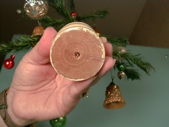 What a super, early goose feather Christmas tree from the 1910-15 era. It is marked Made in Germany on the bottom of the solid wooden cream color enameled base. It has many very early and very thin small glass ornaments, early tin candle holders with blue wax candles whose wick tips have been burned and red composition berries. The tree is in really good condition with the green feathers being very bright. Overall height is 15 1/4". Pictured with an early china head doll (which is 13" high and sold separately) for size comparison.
