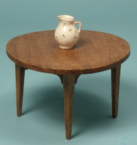 Nicely made ceramic milk pitcher whose top edge and handle are outlined with gold--artist made. Tiny delicate pink flowers with green leaves are hand painted all over, front and back. This piece is all hand made and painted and shows slight unevenness when items are hand executed. Height is 1". Pictured on a 1" scale table--table is not for sale. Very good condition with no breaks. No markings. Looks to be from the 1960's.