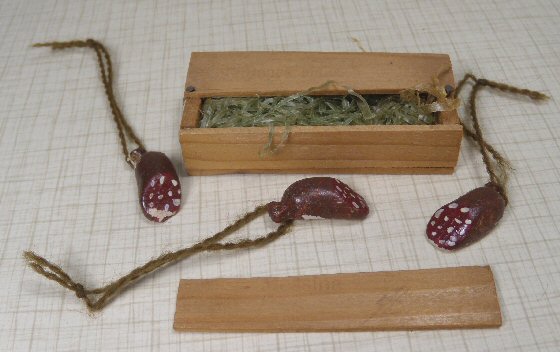 Dollhouse Food three Sausages in Wood Packing Box #199-14