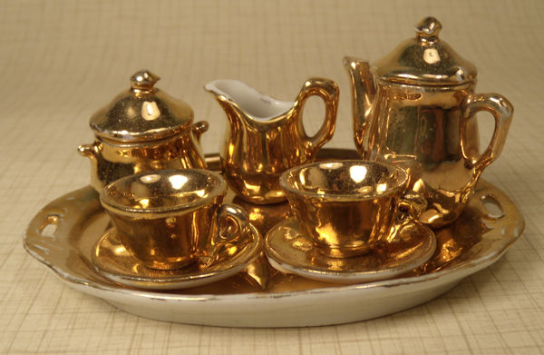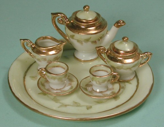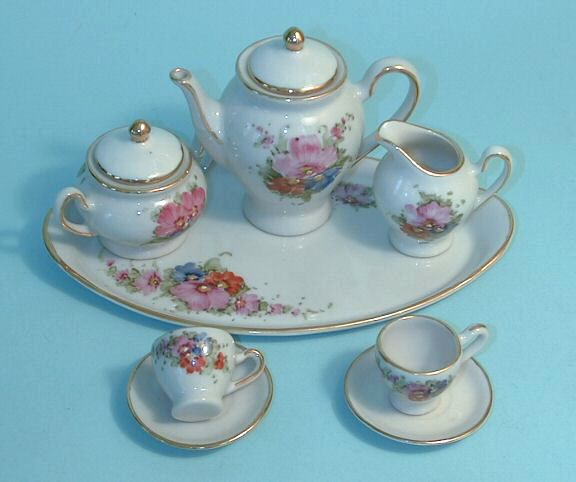 Porcelain MiniatureTea Set with Hand Painted Flower Decorations
