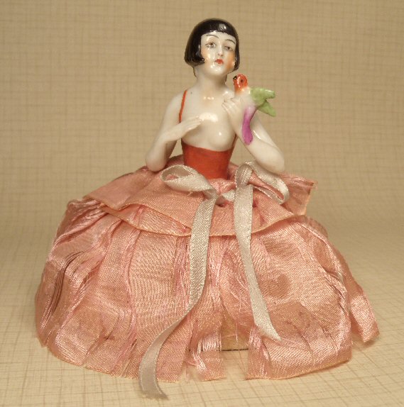 Flapper Holding Bird German Pincushion Doll #196-20 SOLD