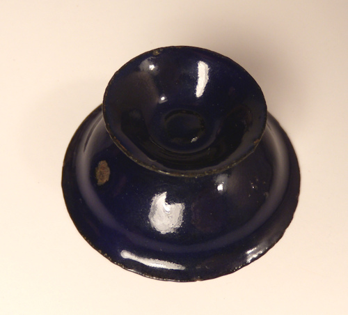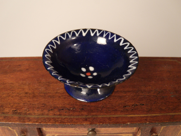 Redware Blue Glazed Pedestal Bowl White Zigzag Decoration