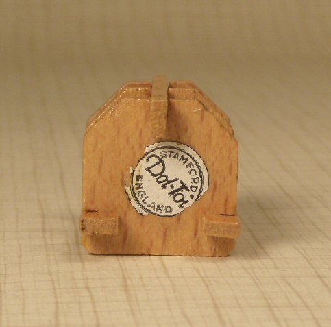 Very pretty small shelf made from light colored wood with a nice finish having 3 shelves, made by Dol Toi in England. Very nice styling and attractively made. Height is 1 1/2". Attached is the label underneath: Dol Toi, Stamford, England. Very nice condition with no breaks or repairs. Dol Toi was started in 1944.