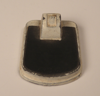 Very nice looking metal scale for the one-inch scale dollhouse. It is heavy metal enameled white with the area to step on enameled black. This piece is in very nice condition, c. 1920's. There are no markings. Length is 1 1/4" and width is 7/8". Hard to find item.