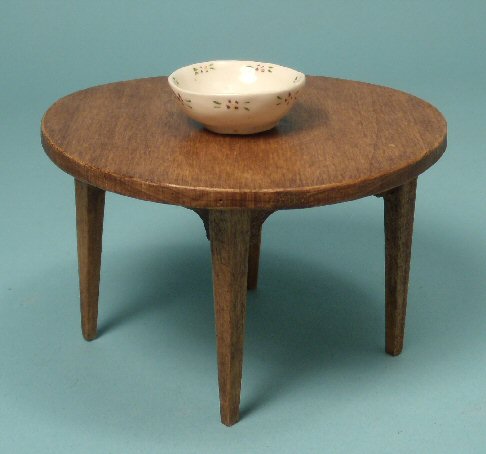 Artist made ceramic bowl with nicely painted tiny maroon flowers with green leaves, painted on the interior and exterior of the bowl. This is all hand made and shows some unevenness because it is hand executed. Pictured on a 1" scale table--table not for sale. Diameter is 1 1/4", height is 1/2". Good condition with no breaks. Looks to be from the 1960's. No markings.