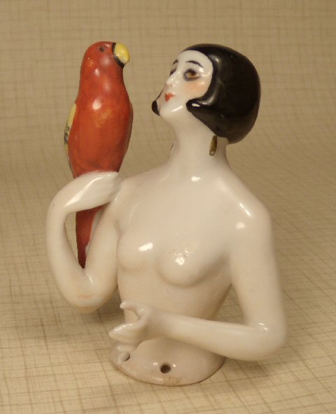 Flapper Holding Large Parrot German Half Doll #196-19 SOLD