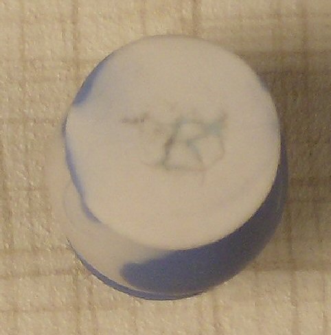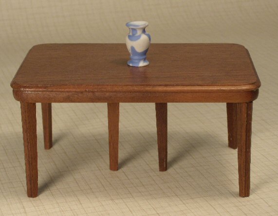 Attractive 1" scale ceramic vase in a blue and white swirl design. Delicate and fine, beautiful form. 7/8" high. Artist made, signed RD or DR superimposed over each other. Great condition. I believe this was made in the 1960's or 1970's. Pictured with a 1" scale Strombecker table (table sold separate) for size comparison.